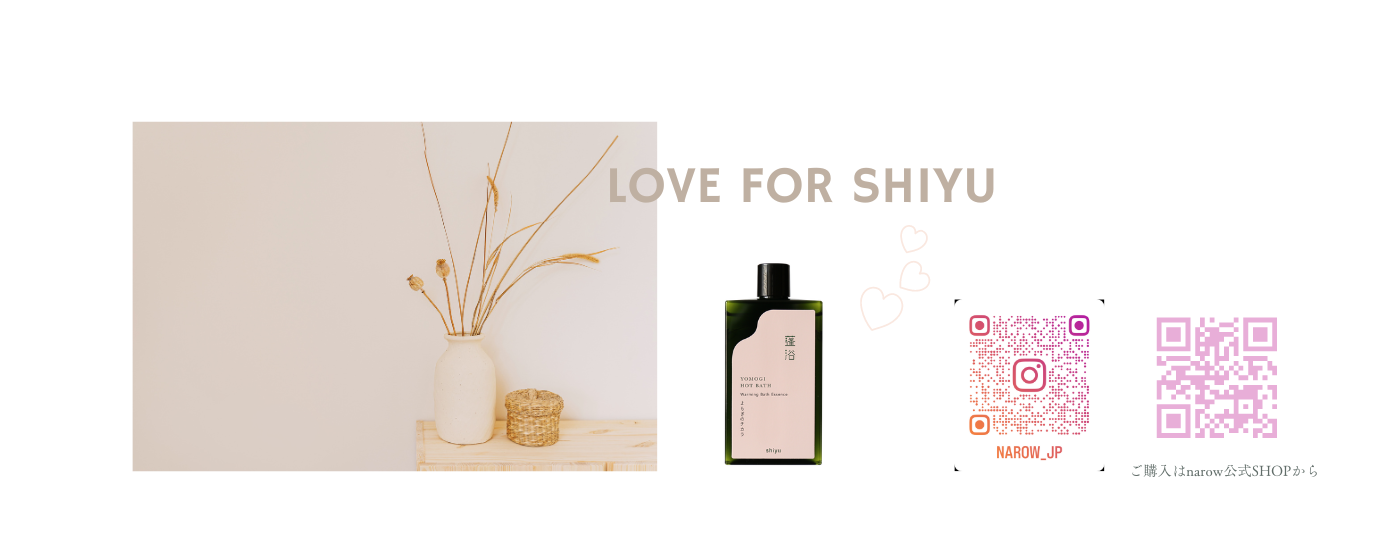 公式SHOPにて販売中! shiyuよもぎバスエッセンスは現在公式オンラインSHOPにて販売中です。 下記のサイトより、ご購入ができます! ぜひご自宅でよもぎ浴を体験してくださいね。 https://narow.official.ec