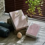 湯船の中でshiyuヒノキマッサージエッグでツボを刺激するマッサージギフトセット。